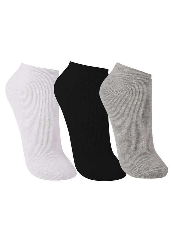 Características: Kit com 3 pares de meia. Ideal para prática esportiva e caminhada. Cano: Curto. Composição: 78% Algodão, 19% Poliéster, 02% Poliamida e 01% Elastano.