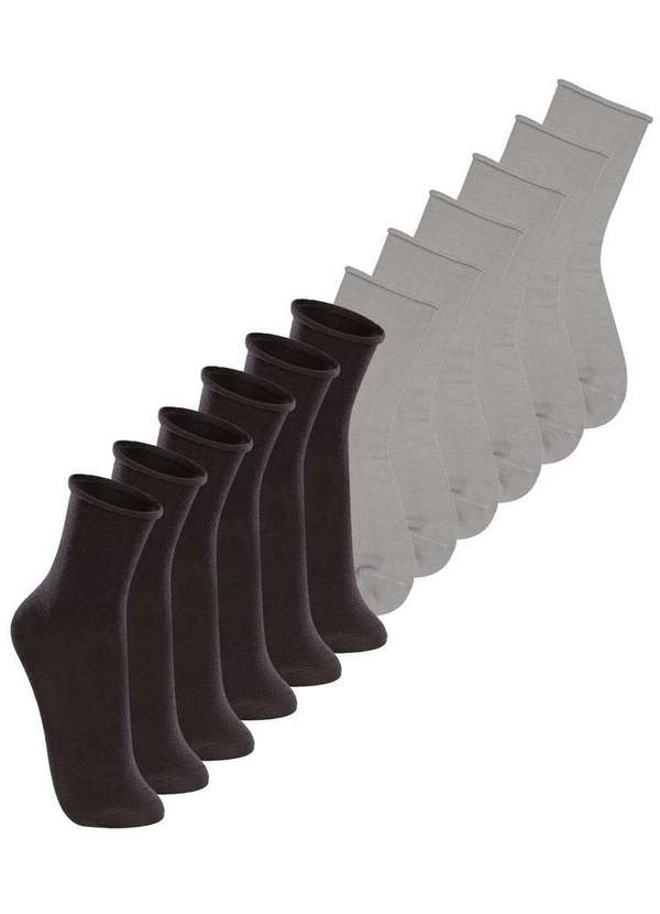 Lupo - Kit 12 pares de Meias sem Punho Cano Médio Lupo 4421-001 Preto-Cinza