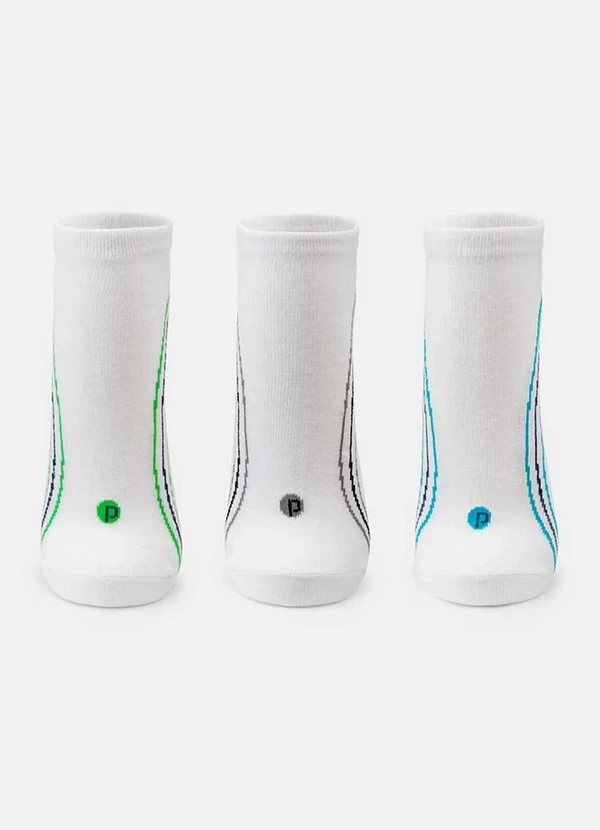Puket - Kit com 3 Meias Cano Curto Puket 8547 3764-100-Branco