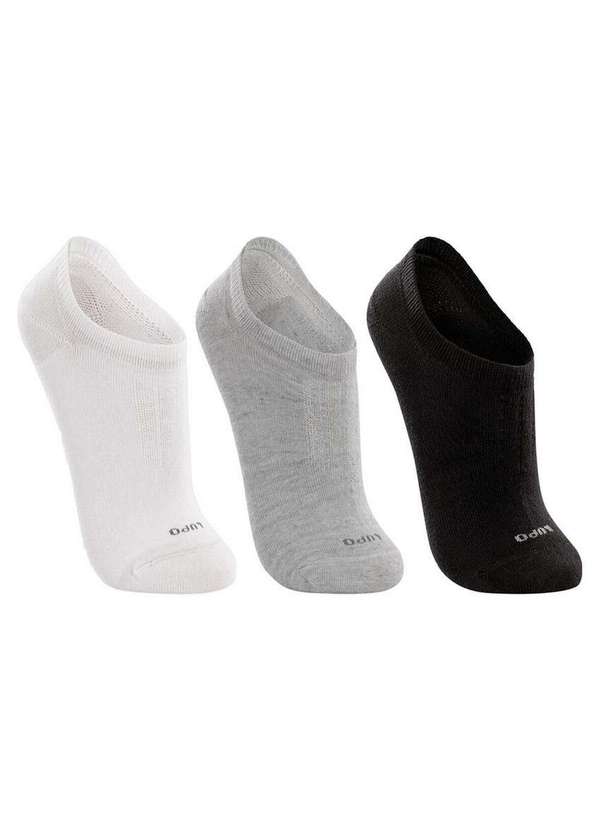 Lupo - Kit 3 pares de Meias Esportiva Invisível Lupo 3270-089 0953-Branca-Cinza-Preto