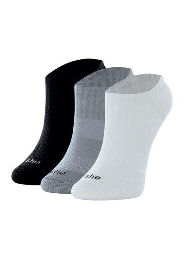 She - Kit 3 pares de Meias Invisível She 287.01 Cz06-Preto-Chumbo-Branco