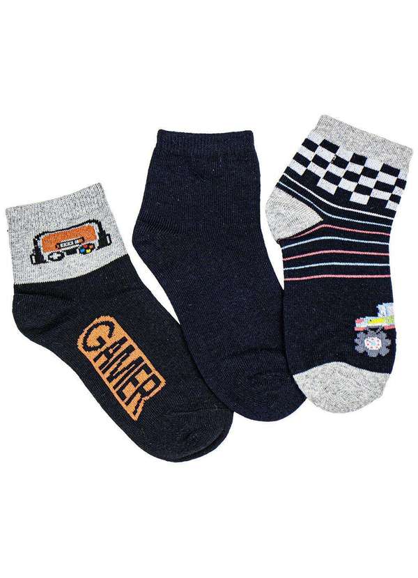 Hoahi - Kit com 3 pares de Meias Cano Curto Infantil Hoahi H021219 Preto/Cinza