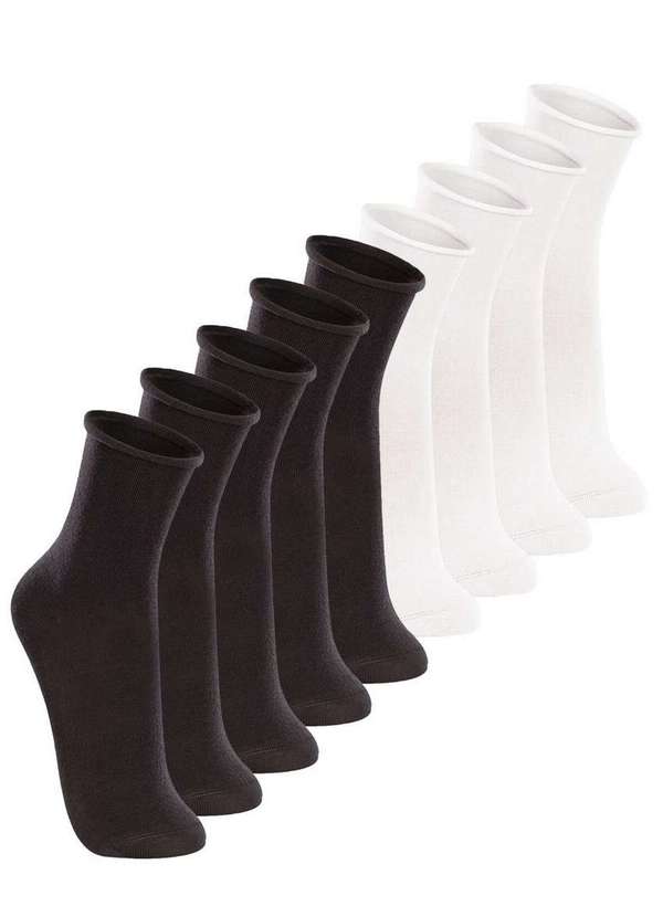 Características: Meia feminina sem punho. Confeccionada em algodão penteado super macio e confortável. Com calcanhar verdadeiro. Cano: Médio. Composição: Preto: Todos preto Branco: Todos branco Cinza: Todos cinza Preto/Branco: 5 preto e 4 branco Preto/Cinza: 5 preto e 4 cinza Branco/Cinza: 5 branco e 4 cinza Composição: 74% Algodão, 24% Poliamida e 02% Outra fibra.