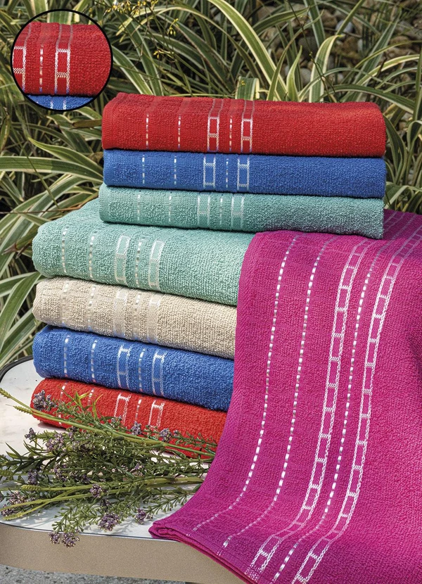 Composto por: 1 toalha de banho. Composição: Algodão. Tam.: 70x1,30 cm. Gramatura: 250 g/m². Cor: Vermelho. Imagens meramente ilustrativas.