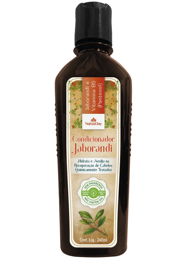 Composto por: 1 Condicionador de Jaborandi Natusday. Hidrata e recupera cabelos químicamente tratados. Contém pantenol. 250mL. Imagens meramente ilustrativas.