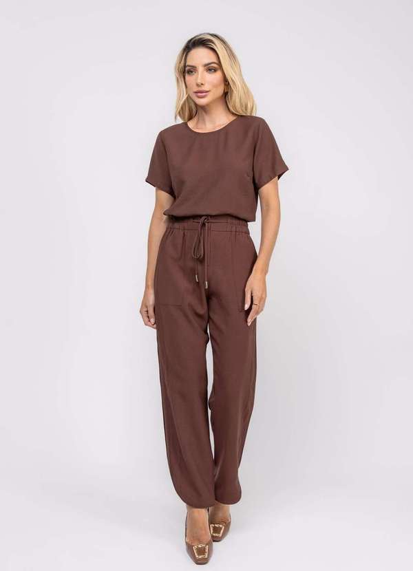 Salvatore Fashion - Blusa Alfaiataria Básica Manga Curta Marrom