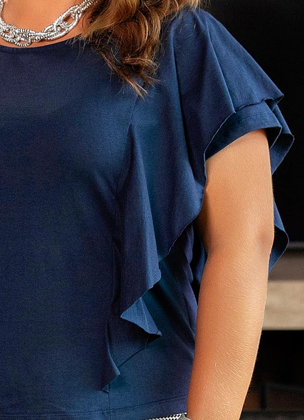 Marguerite - Blusa Azul Marinho em Malha de Algodão