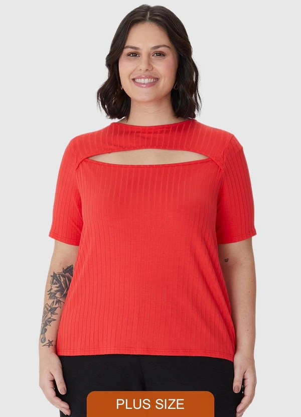 Malwee - Blusa Canelada Cut Out PlusVermelho