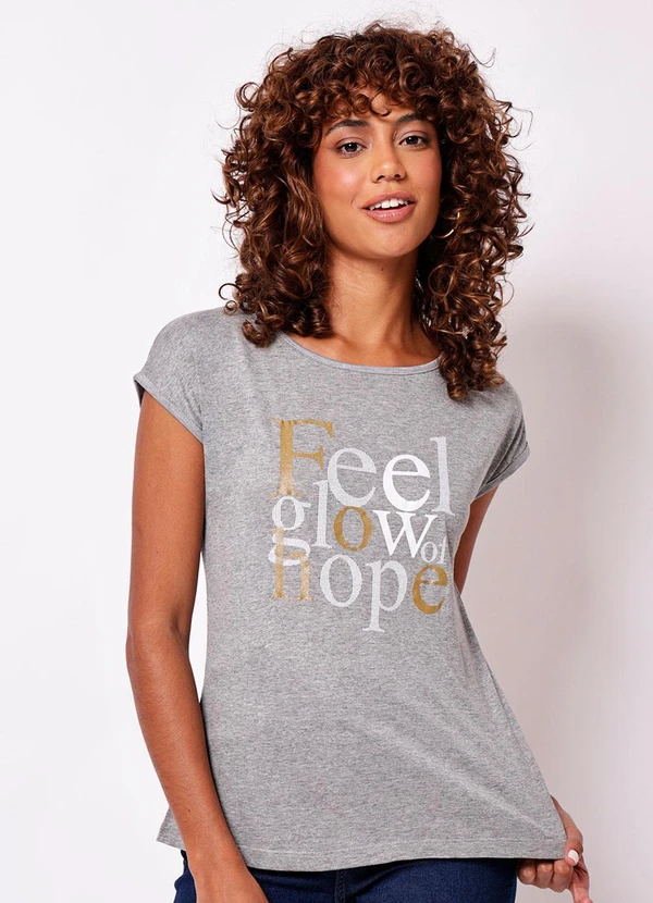 Torra - Blusa Feminina com Estampa Manga Curta Cinza