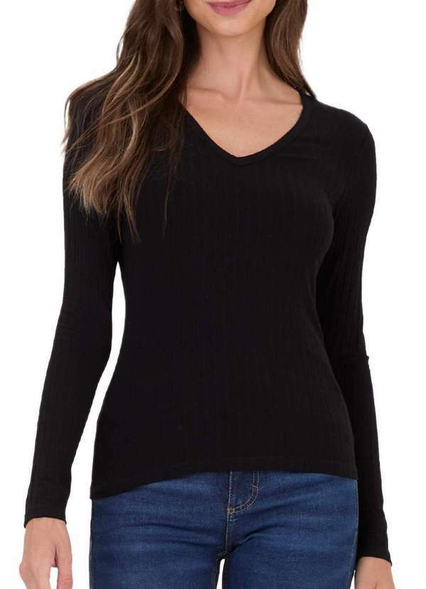 Características: Blusa Básica Feminina Confeccionado em malha canelada de viscose Proporciona conforto e maciez ao vestir Seu design clean e minimalista a torna perfeita para looks casuais e elegantes O tecido leve e respirável torna-a adequada para todas as estações do ano Possui decote V Mangas longas Peça clássica e versátil que não pode falta no guarda roupa Atende tamanho Plus Size Composição: 85% Viscose no Mínimo