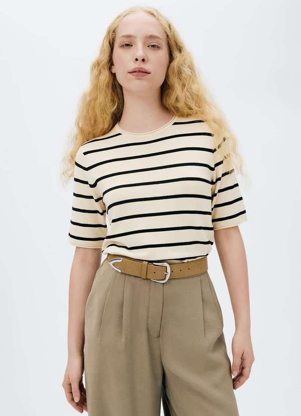 Hering - Blusa Feminina Manga Curta em Trico Fio Tinto Branco