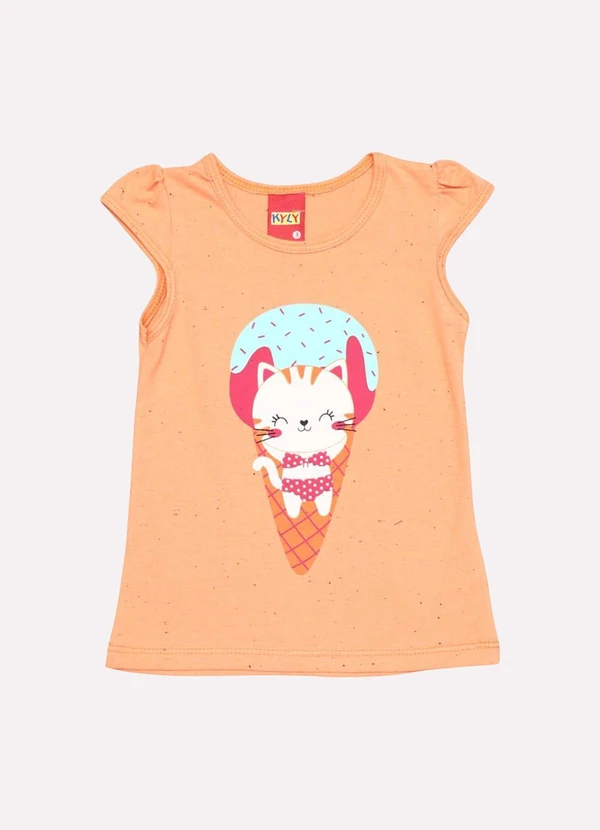 Kyly - Blusa Infantil Menina Gatinho Laranja