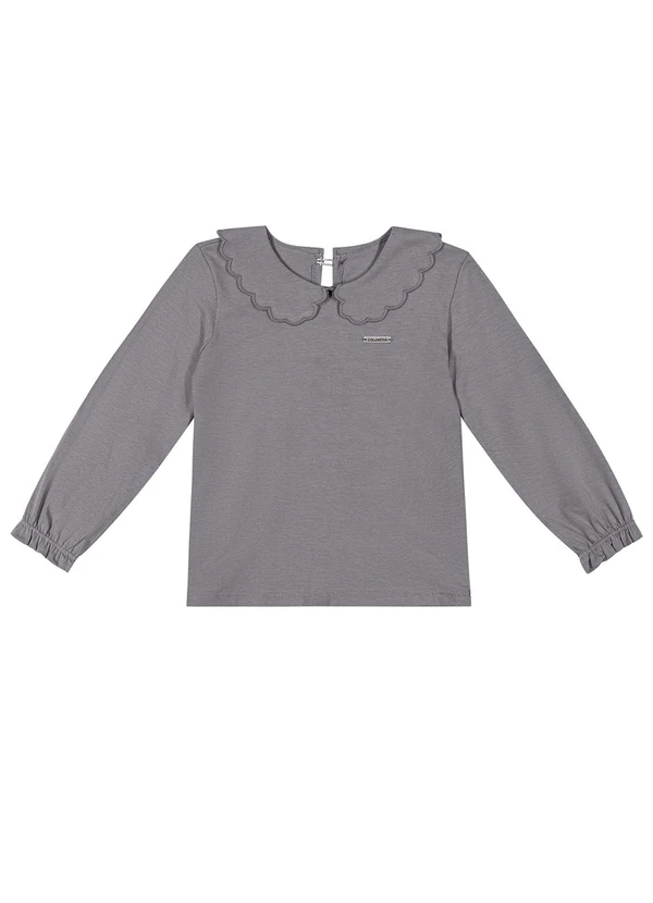 Colorittá - Blusa Infantil Menina Manga Longa com Gola Cinza