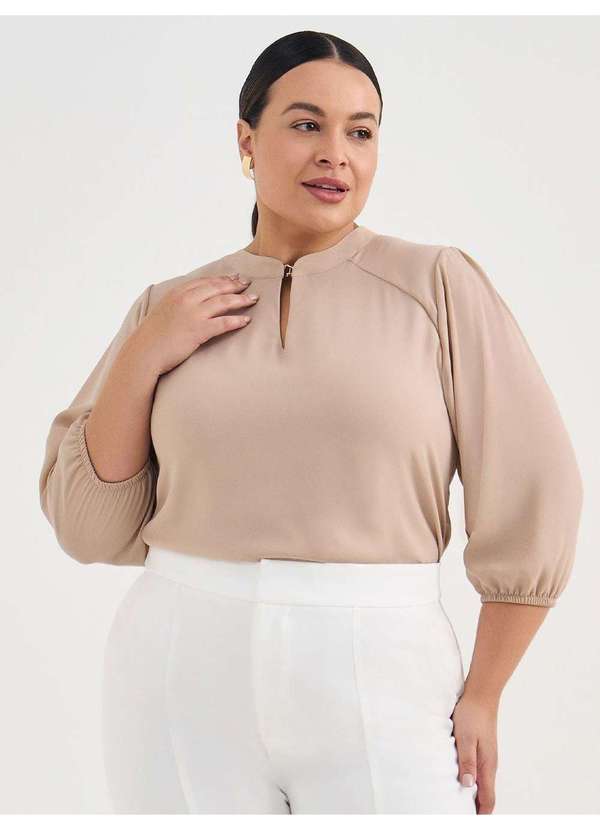 Principessa - Blusa Manga 7/8 em Crepe Plus Size Mocha Mousse Justina