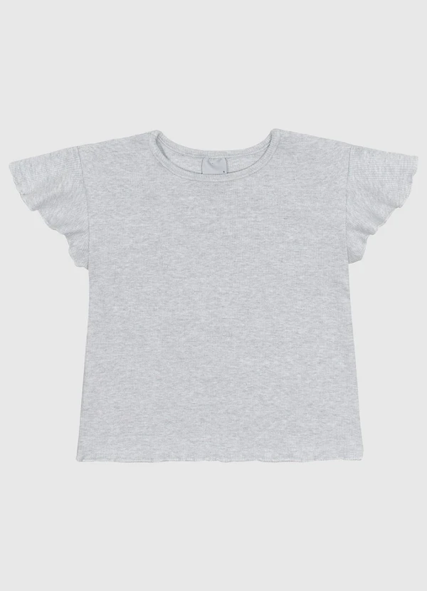 Malwee Kids - Blusa Manga Curta Babado em Ribana Algodão Cinza