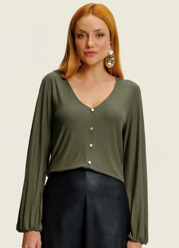 Endless - Blusa Manga Longa Bufante Viscose Verde