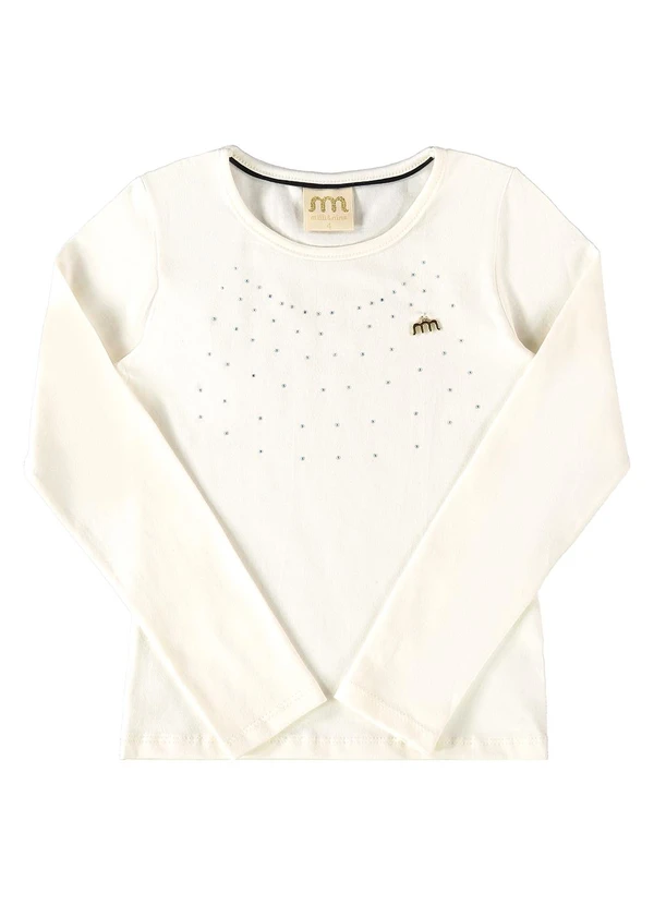 Milli e Nina - Blusa Manga Longa Menina em Cotton Penteado Bege