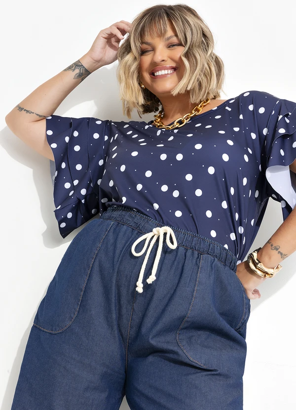 Marguerite - Blusa Poá Marinho em Malha Fria