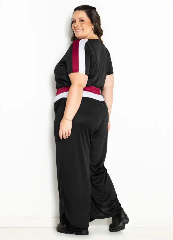 Marguerite - Blusa Preta com Contrastes Plus Size