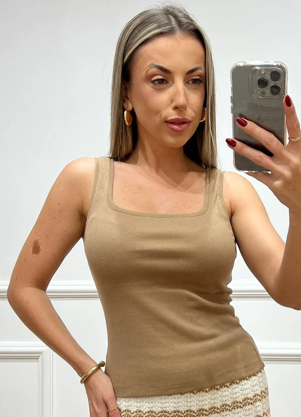 Doce Tom - Blusa Regata Canelada Bege