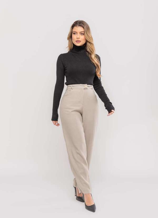 Salvatore Fashion - Blusa Tricot Modal Canelado Gola Rolê Preto