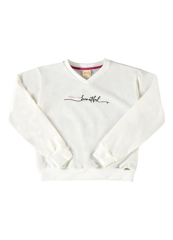 Milli e Nina - Blusão Juvenil Malha Tricot Bordado a Fio Bege