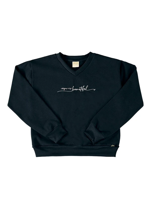 Milli e Nina - Blusão Juvenil Malha Tricot Bordado a Fio Preto