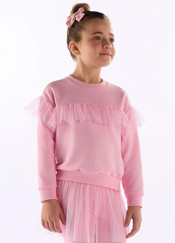 Quimby - Blusão Moletom com Tule Glitter Rosa