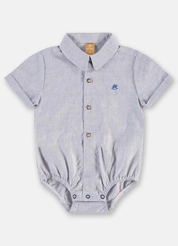 Up Baby - Body Camisa Bebê Menino Algodão Linho Azul