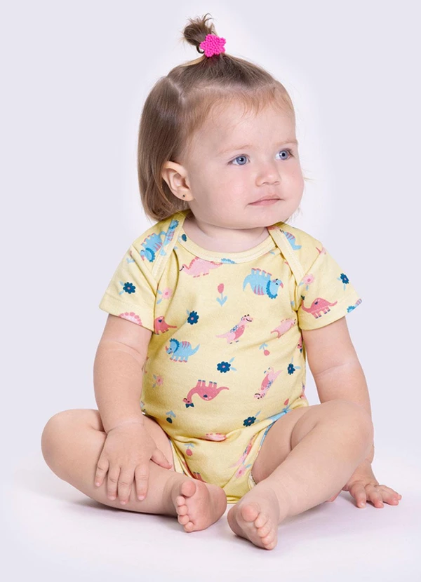 Alakazoo - Body em Malha Suedine com Manga Curta Amarelo