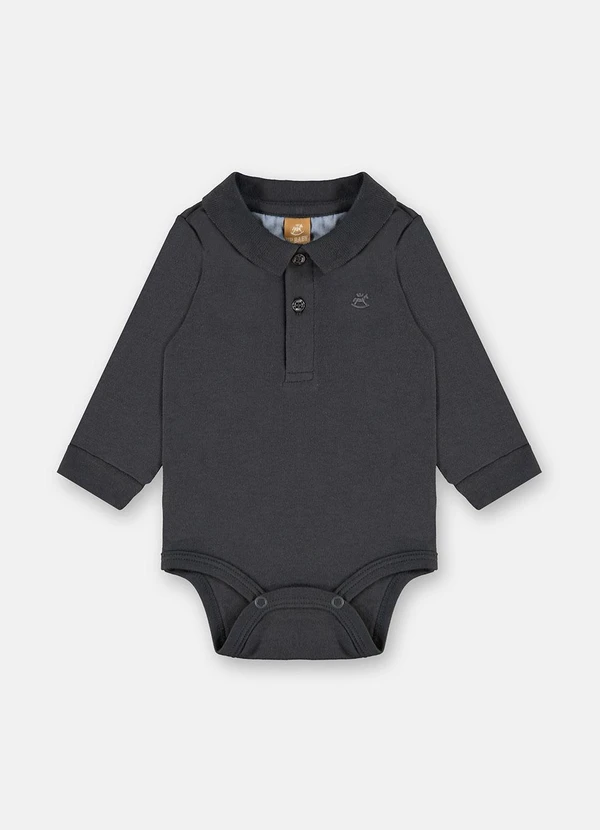 Up Baby - Body Polo Manga Longa Bebê Menino Cinza