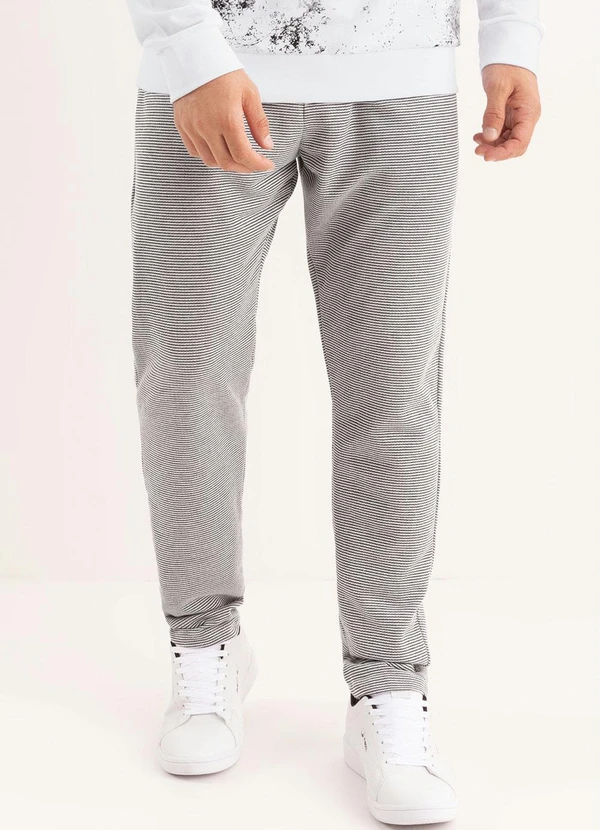 Moda Pop - Calça Listrado Cinza com Bolsos