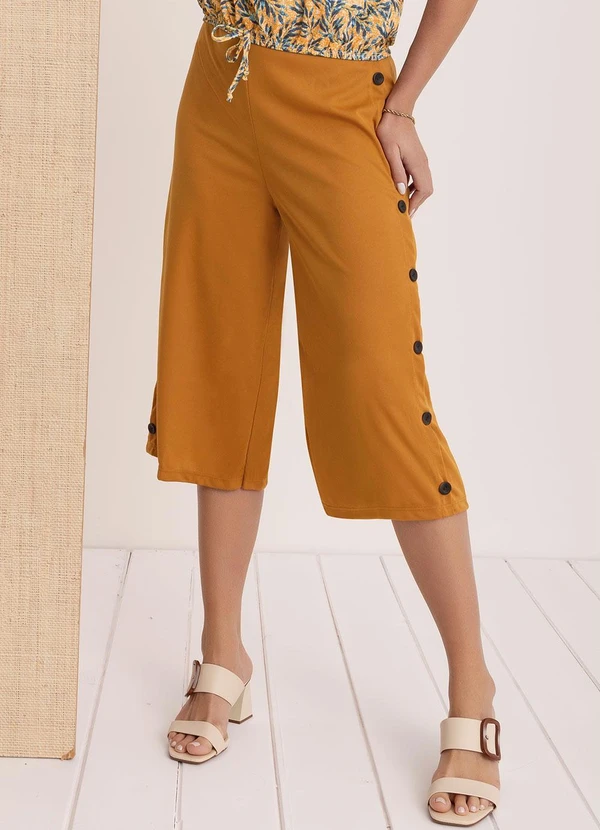 Moda Pop - Calça Pantacourt Caramelo com Botões Laterais