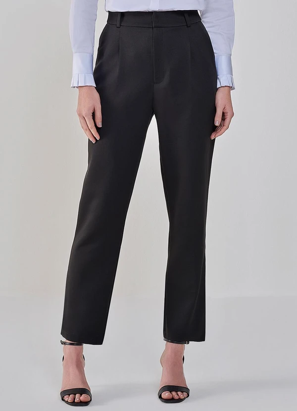 Principessa - Calça Reta Slim de Alfaiataria com Prega Donatela