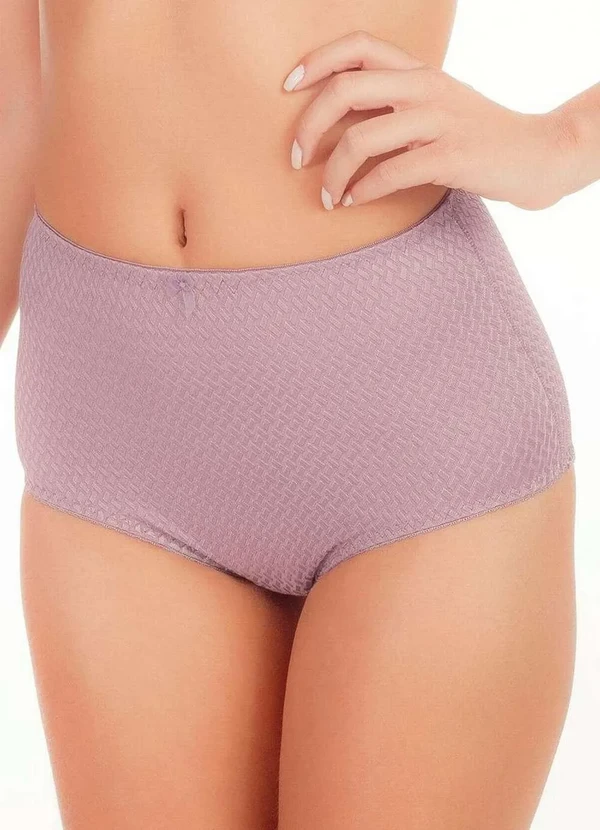 Características: Calcinha Plus Size com cintura alta e laterais largas. Confeccionada em tecido com fio de Lycra®. Textura geométrica em relevo de design consagrado. Frente adornada com lacinho de cetim. Com costuras laterais e traseira. Modo de Lavagem: Lavar a mão. Não usar alvejante. Não secar em tambor. Não passar a ferro. Não limpar a seco. Composição: Corpo: 88% Poliamida e 12% Elastano. Forro fundo: 100% Algodão.