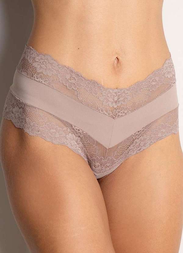 Características: Caleçon que intercala renda importada e tecido de supermicrofibra. Proporciona boa cobertura e não aperta nem um pouco porque é totalmente sem elásticos na volta do quadril. Muito confortável. O tecido de supermicrofibras é fino, sedoso e refrescante. Absorve facilmente a umidade da pele mantendo uma sensação de frescor por todo o dia. Modo de Lavagem: Lave a mão em água fria. Não use cloro. Não passe. Não use secadora. Composição: Corpo: 89% Poliamida e 11% Elastano. Renda: 87% Poliamida e 13% Elastano. Fundo: 100% Algodão.