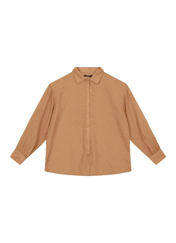 Enfim - Camisa Ampla Listrada com Brilho Caramelo