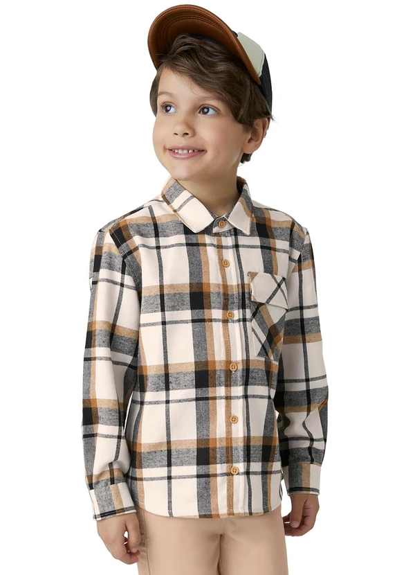 Carinhoso - Camisa Flanelada Xadrez Menino Bege