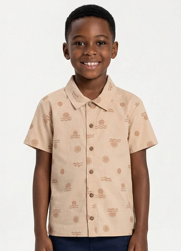Elian - Camisa Manga Curta Infantil Menino Tropical Bege