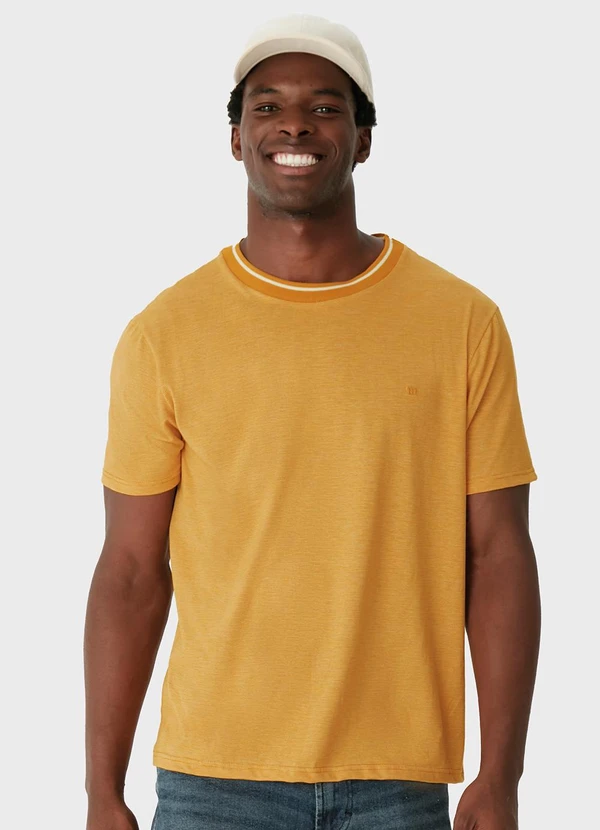 Malwee - Camiseta em Malha Fio a Fio Amarelo Mostarda