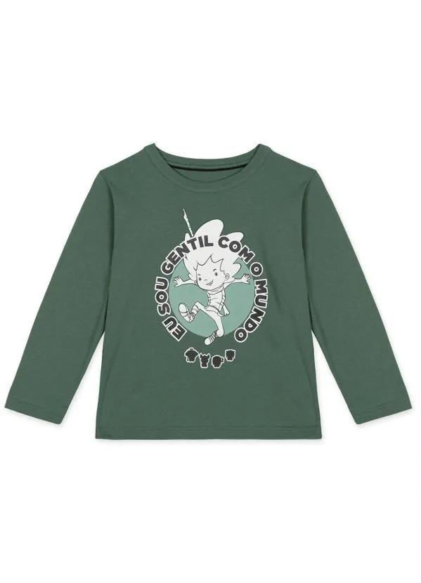 Lilica Ripilica - Camiseta Vito Manga Longa Infantil Unissex Verde