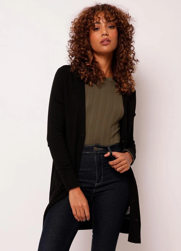 Torra - Cardigan Feminino Alongado com Botões Preto