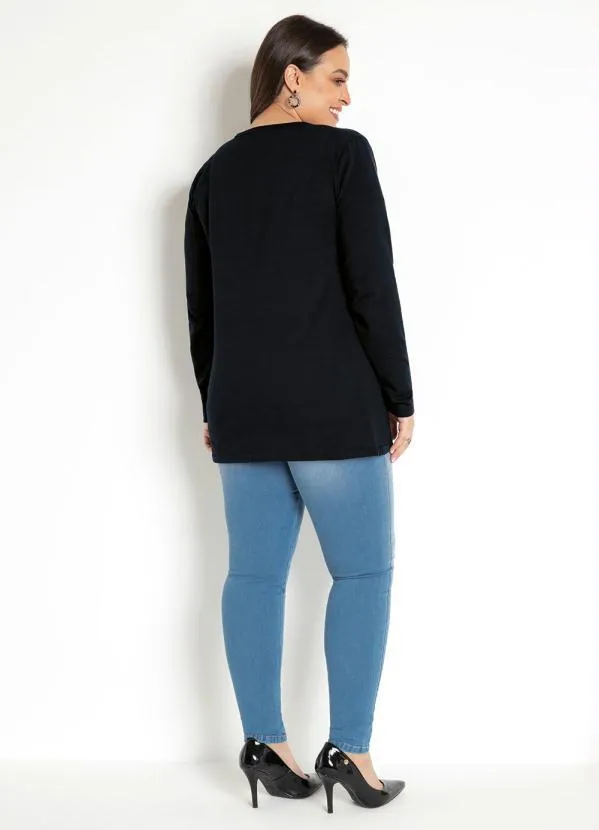 Moda Pop - Casaco em Moletinho Manga Longa Preto