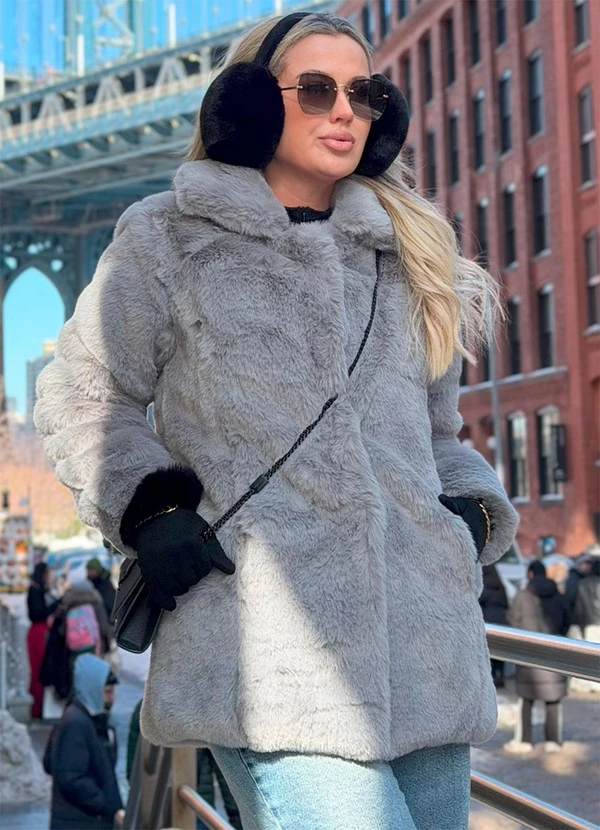 Hiatto Confecção - Casaco Feminino Alongado em Pelo Cinza