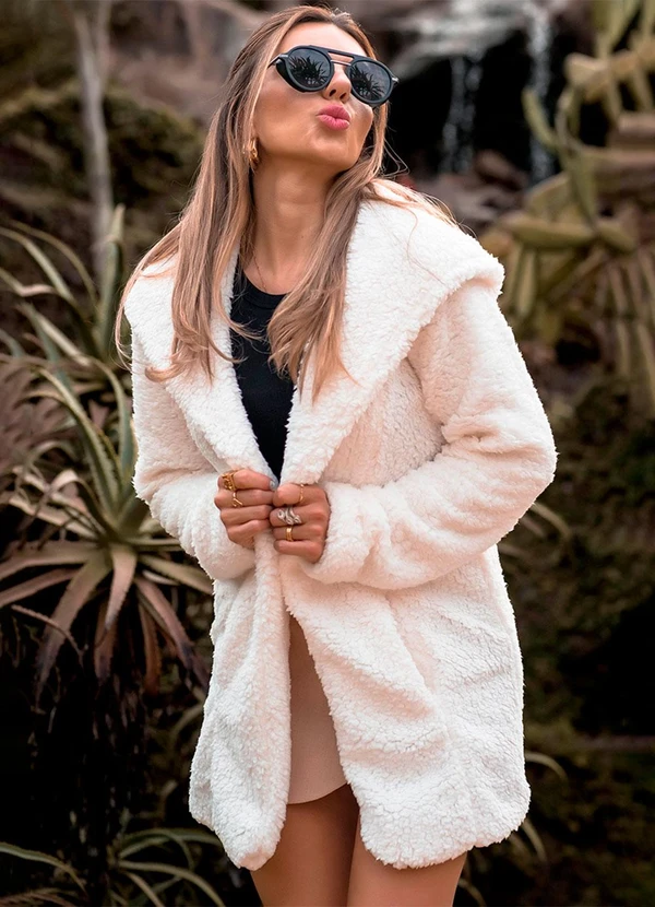 Hiatto Confecção - Casaco Feminino Pelo Teddy Off White