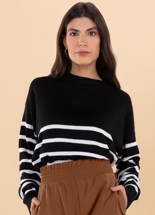 Angel - Casaco Tricot Listras Preto