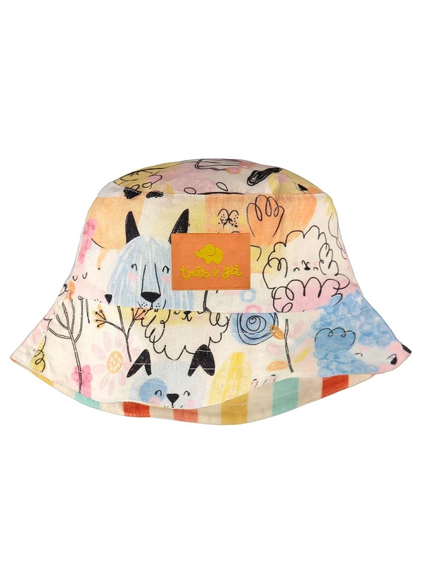 Três e Já - Chapéu Unissex Dupla Face Bege