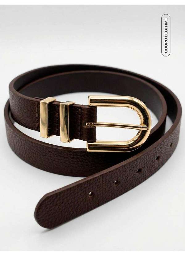 Principessa - Cinto em Couro com Passantes Dourados Marrom Aylin