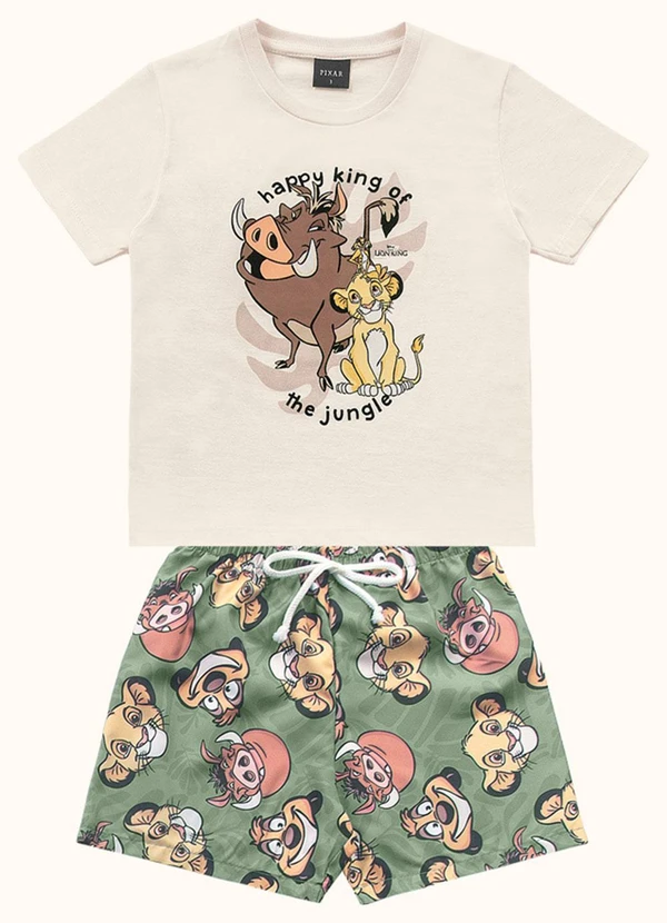 Fakini Kids - Cj.Camiseta/Bermuda Rei Leao Bege
