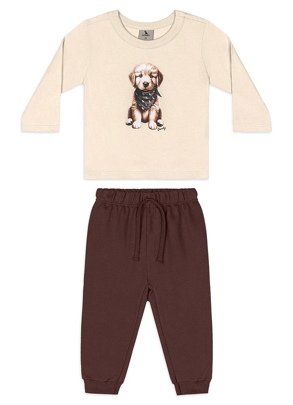 Quimby - Conjunto Bebê Camiseta Golden Calça Bege